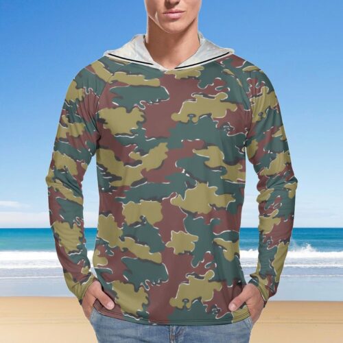 Belgian jigsaw 1st pattern Sun Protection Hooded Rashguard T-Shirt