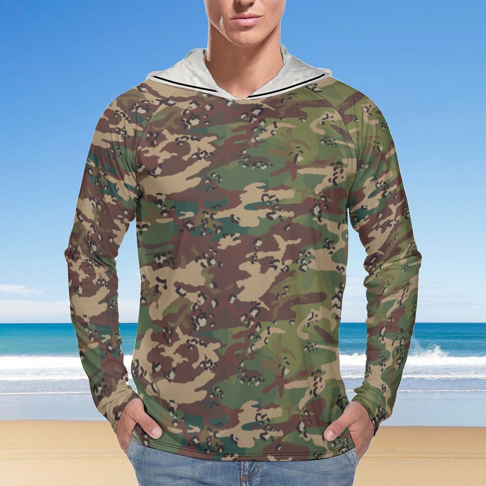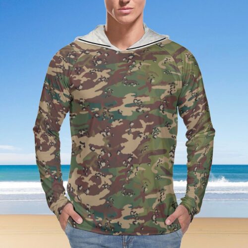 Chocolate Chip DPM Woodland Aspic  Sun Protection Hooded Rashguard T-Shirt