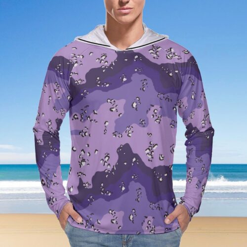 Chocolate Chip ERDL Deep Purple  Sun Protection Hooded Rashguard T-Shirt