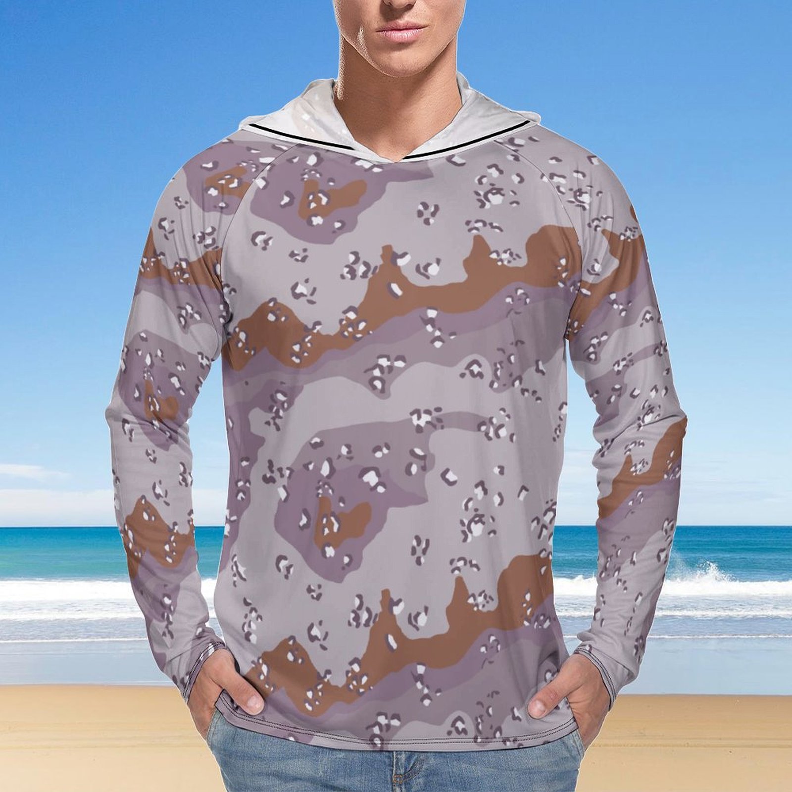 Chocolate Chip ERDL Snowy Tree Sun Protection Hooded Rashguard T-Shirt