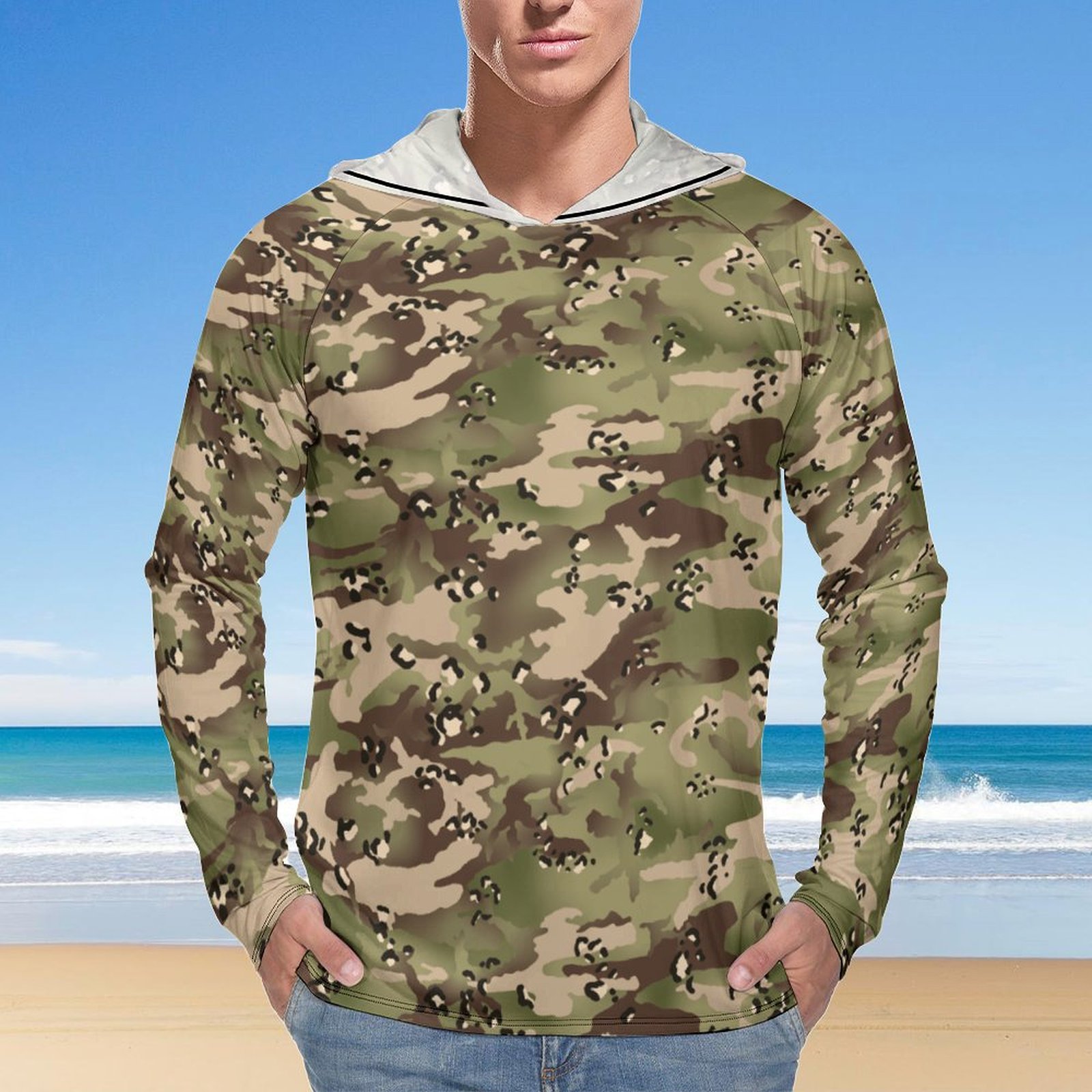 Chocolate Chip MTP Woodland Arid Sun Protection Hooded Rashguard T-Shirt