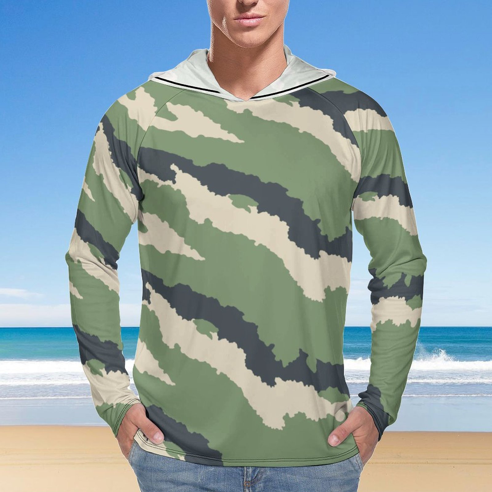 Gabon Army Camouflage Sun Protection Hooded Rashguard T-Shirt