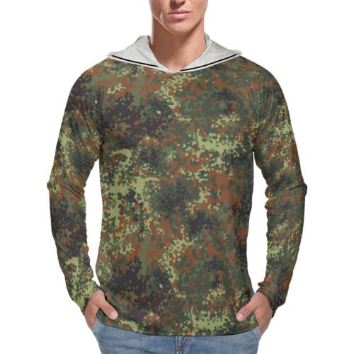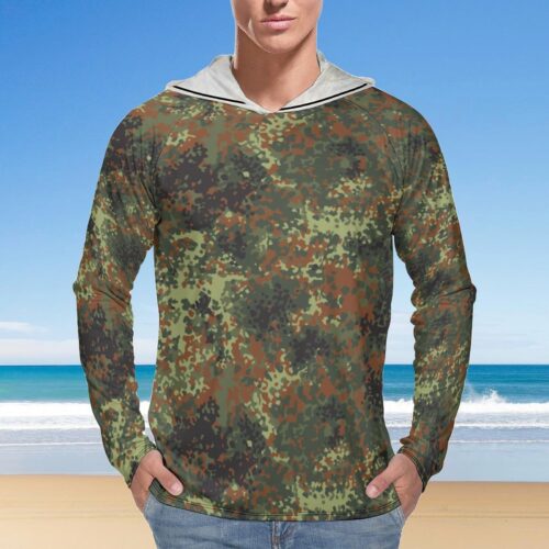 German Flecktarn Troppentarn Camouflage Sun Protection Hooded Rashguard T-Shirt