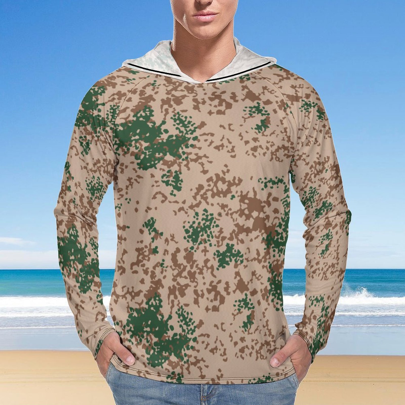 German Snow Flecktarn Desert v2 Camouflage Sun Protection Hooded Rashguard T-Shirt