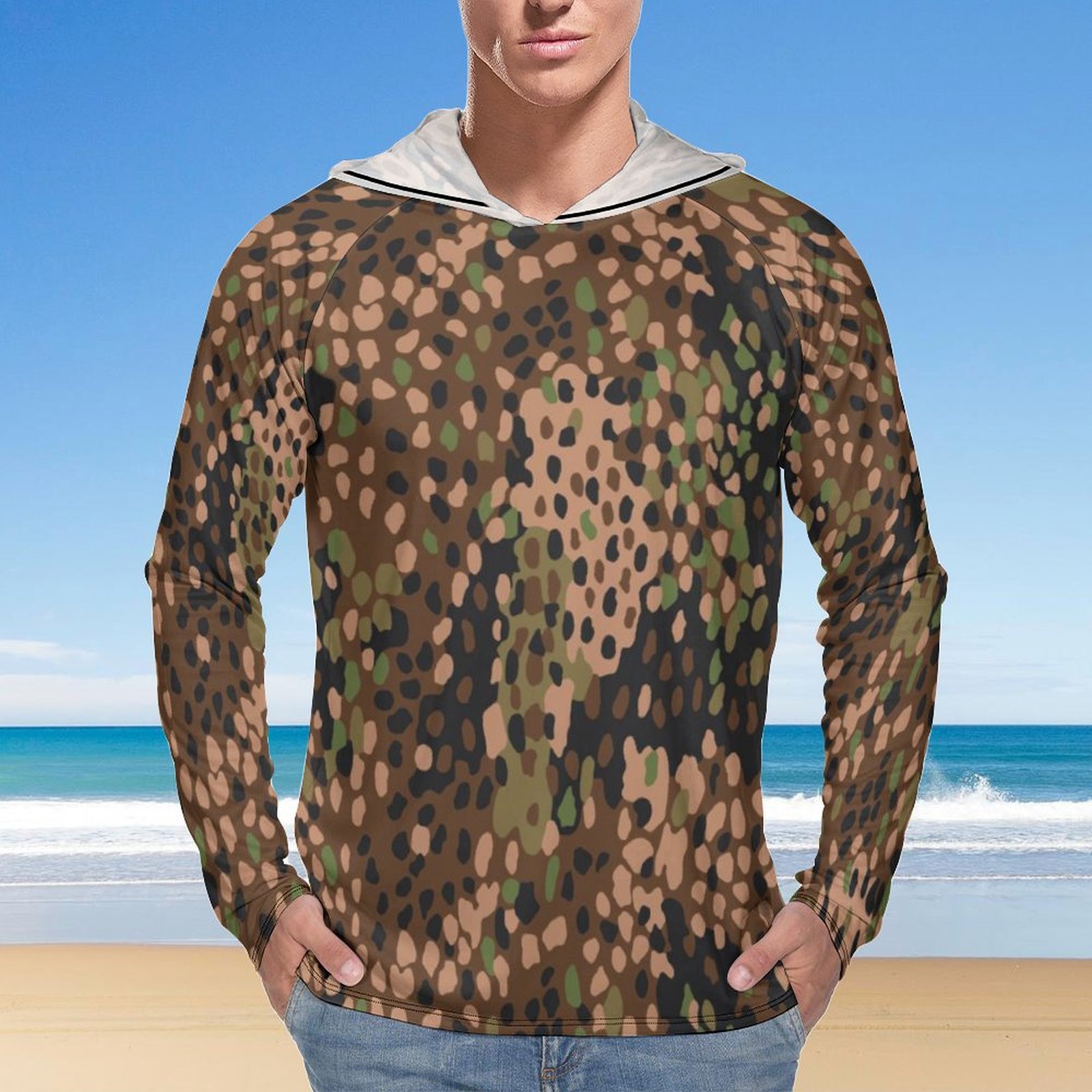 German WWII Erbsenmuster Pea Dot 44 Camouflage Sun Protection Hooded Rashguard T-Shirt