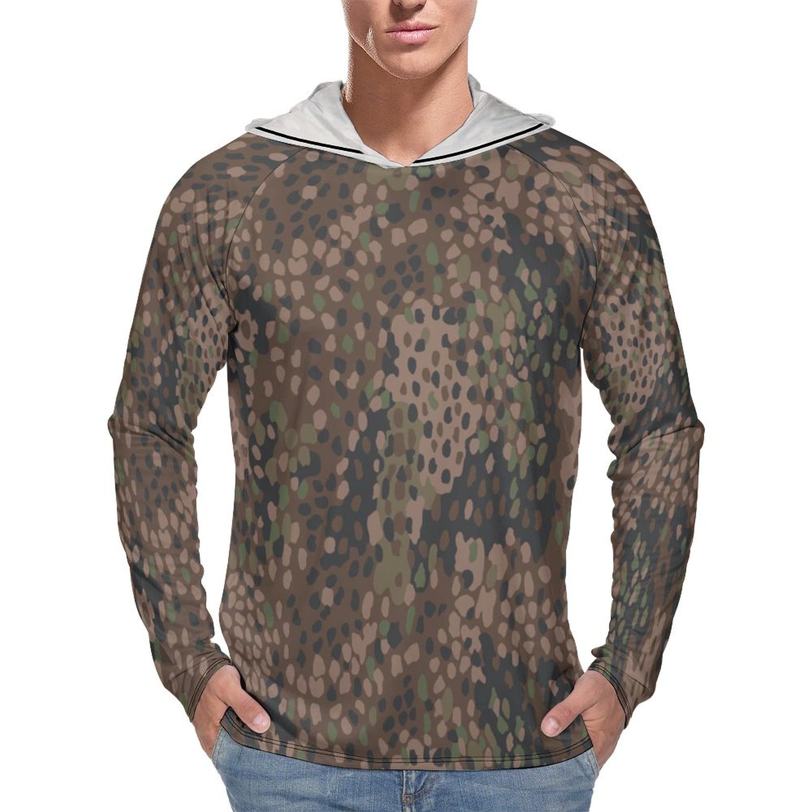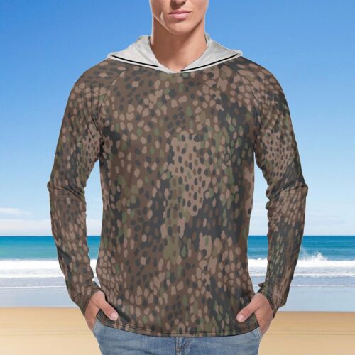 German WWII Erbsenmuster Pea Dot 44 Dark Camouflage Sun Protection Hooded Rashguard T-Shirt