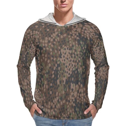 German WWII Erbsenmuster Pea Dot 44  Dark Camouflage Sun Protection Hooded Rashguard T-Shirt