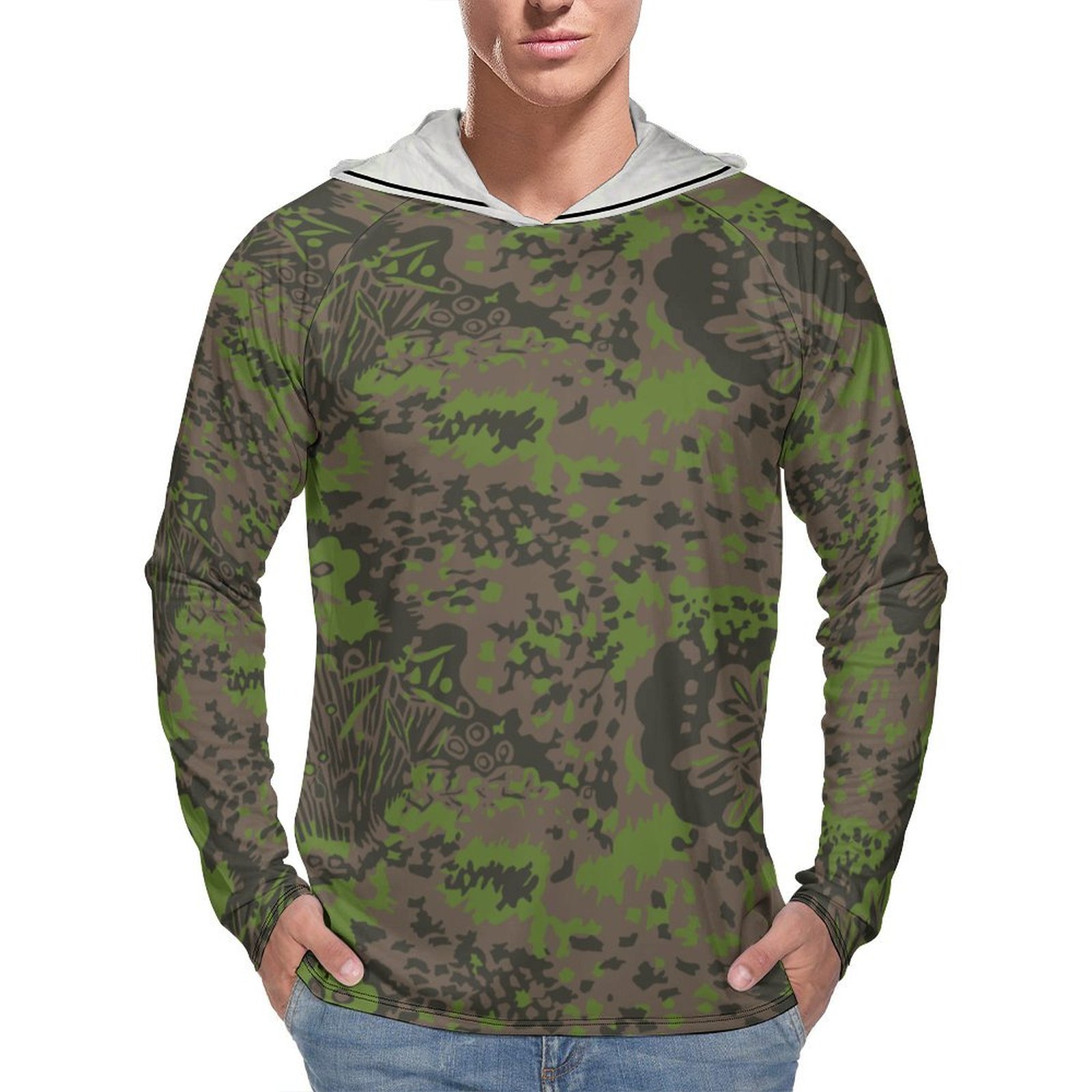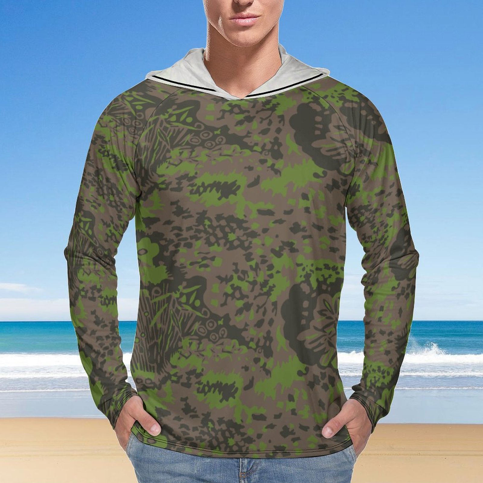German WWII Palmenmuster Spring Camouflage Sun Protection Hooded Rashguard T-Shirt
