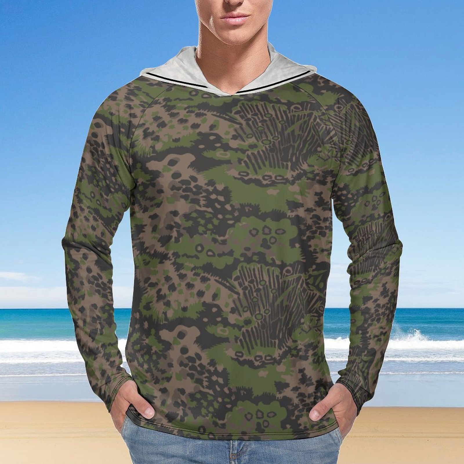 German WWII Palmenmuster Spring v2 Camouflage Sun Protection Hooded Rashguard T-Shirt