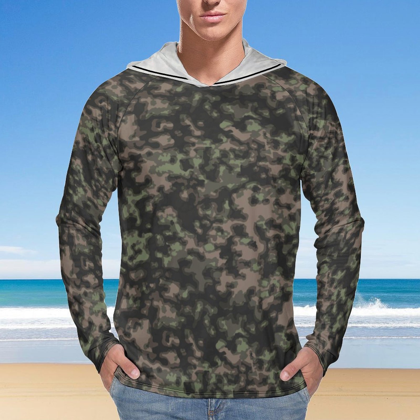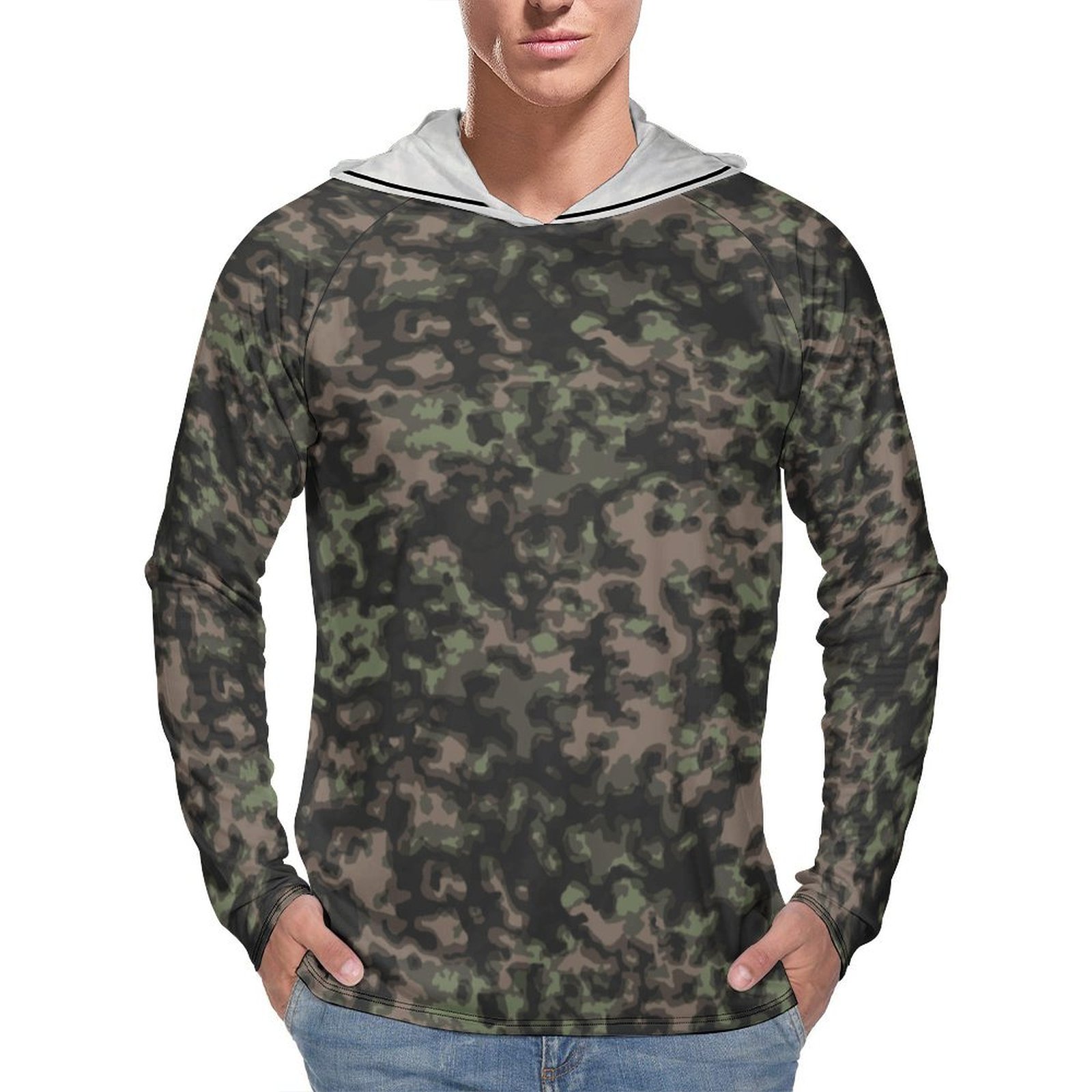 German WWII Rauchtarn Spring Camouflage Sun Protection Hooded Rashguard T-Shirt