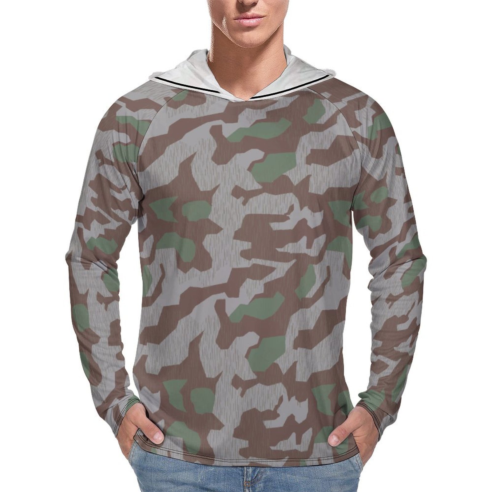German WWII Splittertarn 41 v2 Camouflage Sun Protection Hooded Rashguard T-Shirt