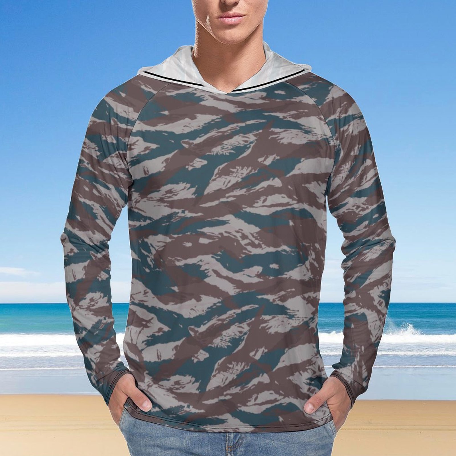 Greek Lizard v5 Camouflage Sun Protection Hooded Rashguard T-Shirt
