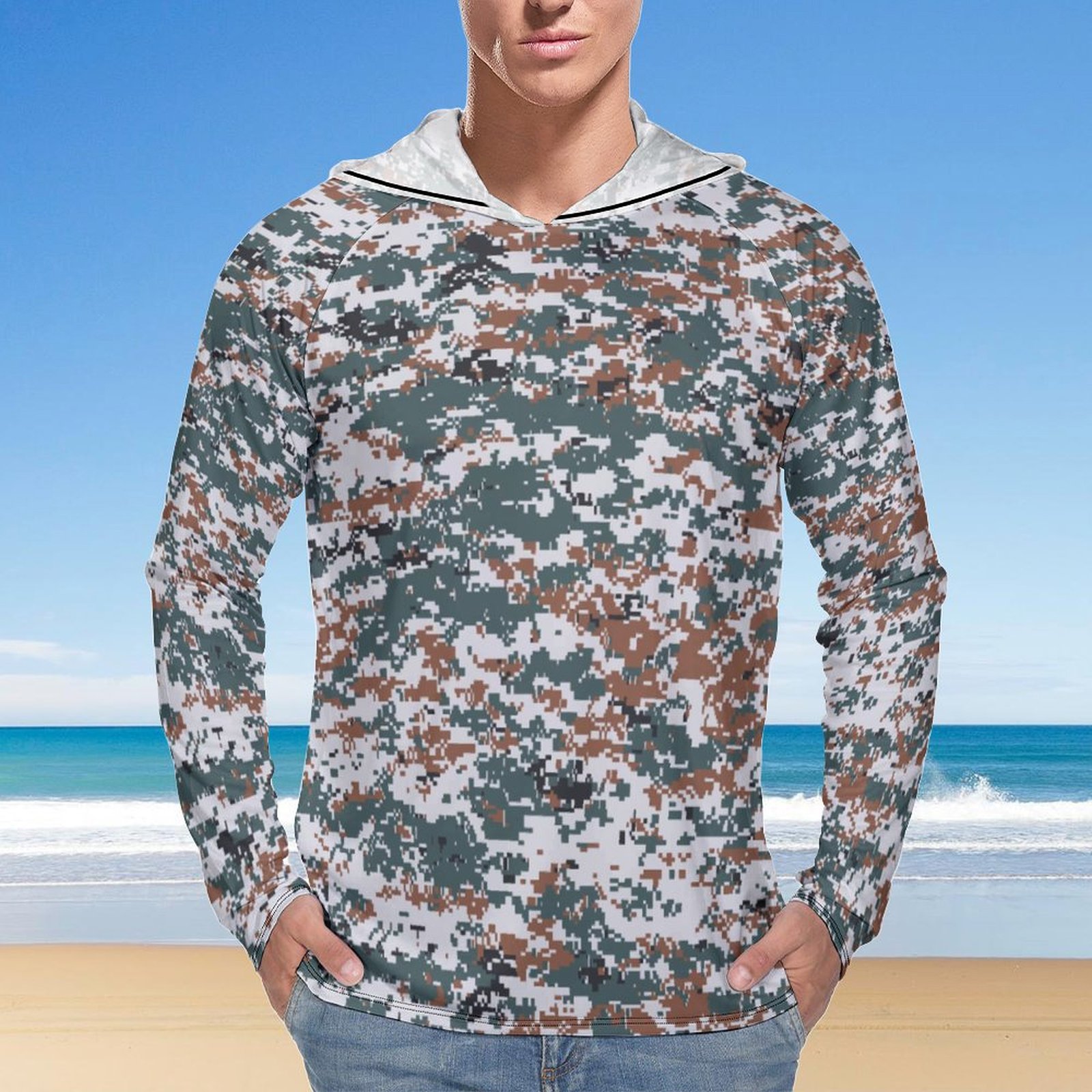 Iran IRGC Basij forces Pixelated v2 Camouflage Sun Protection Hooded Rashguard T-Shirt
