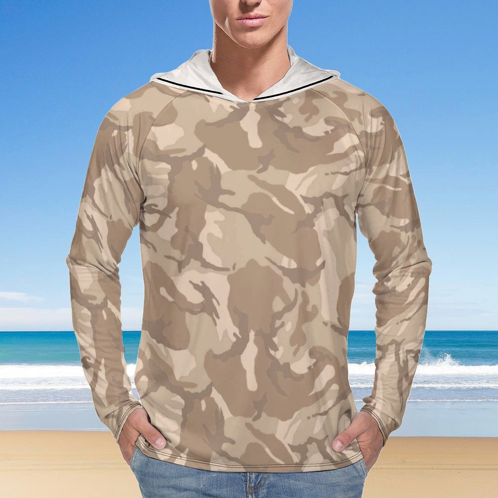Iraq Desert DPM Camouflage Sun Protection Hooded Rashguard T-Shirt