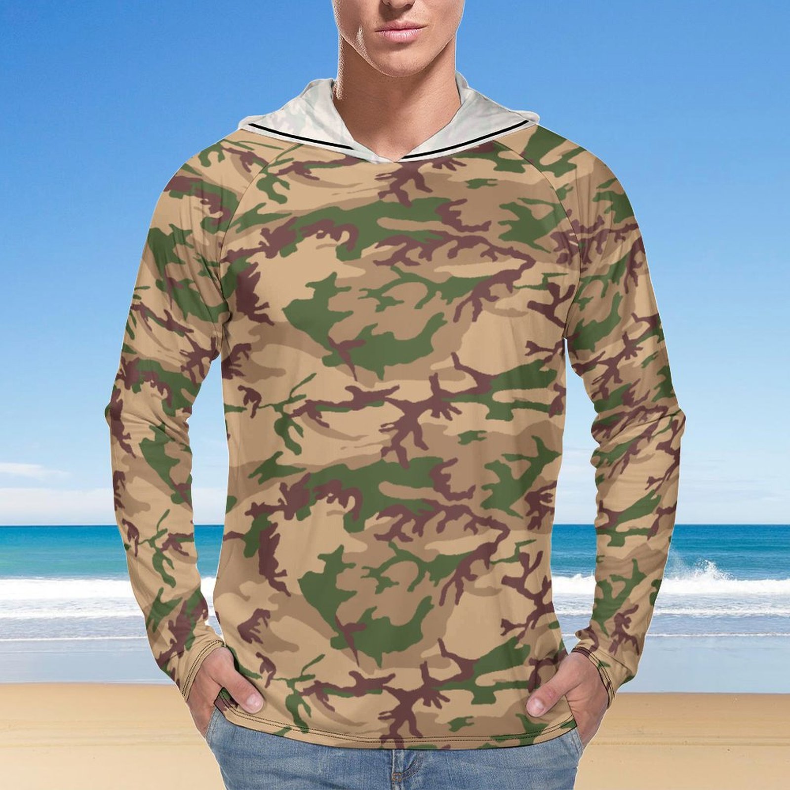 Italy Telo Mimetico Deserto Camouflage Sun Protection Hooded Rashguard T-Shirt
