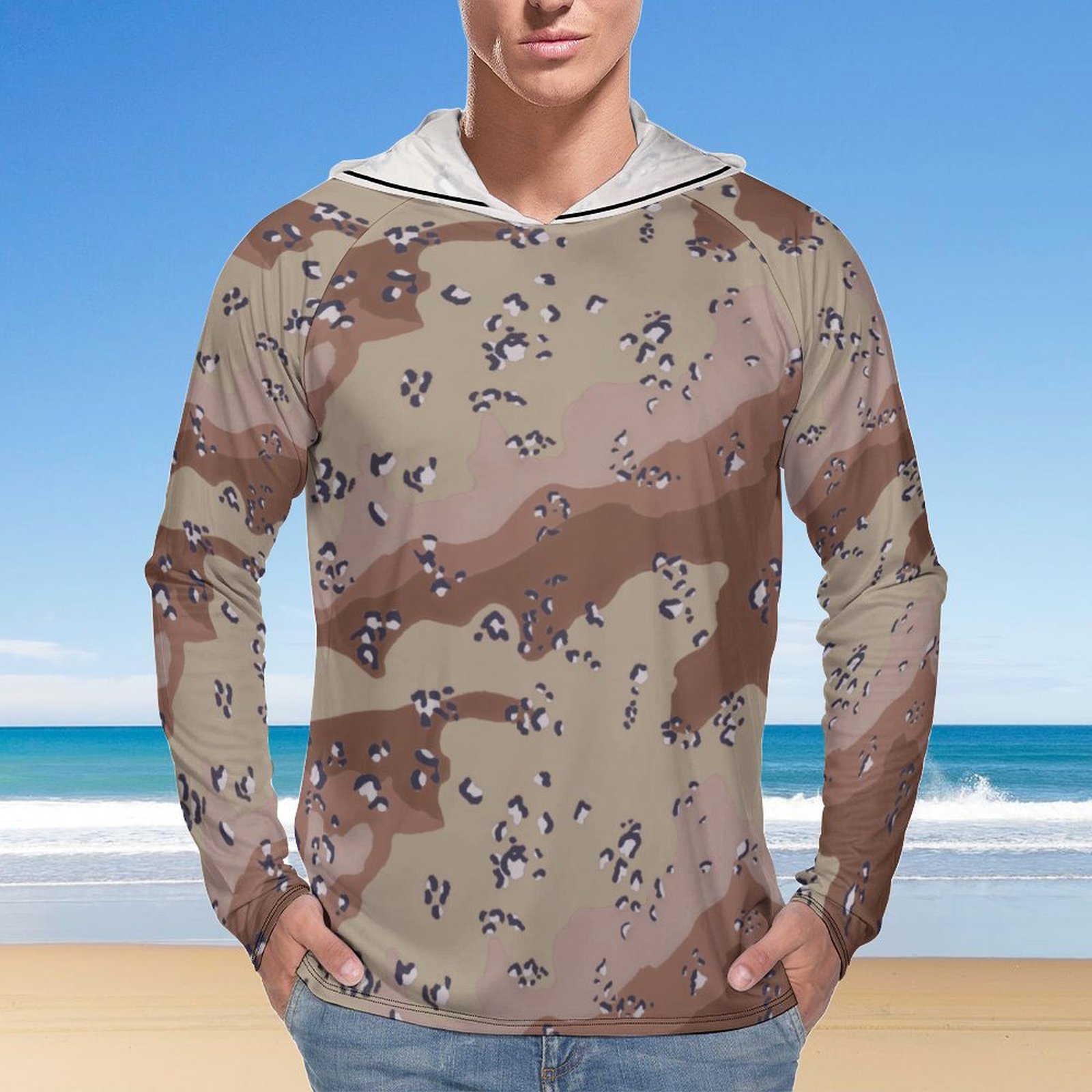 Kuwait Exiled Forces Chocolate Chip Camouflage Sun Protection Hooded Rashguard T-Shirt