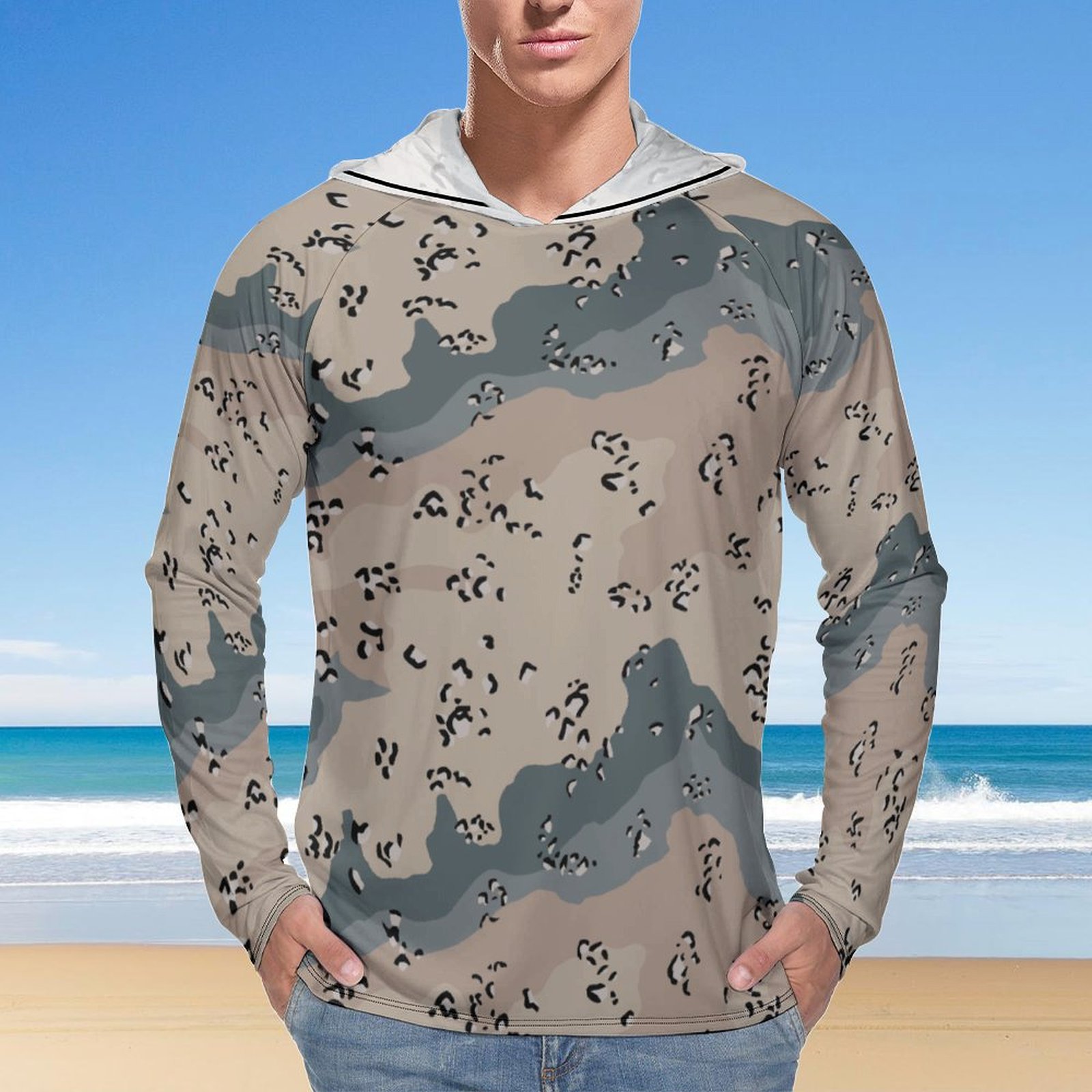 Saudi Arabia Chocolate Chip Sun Protection Hooded Rashguard T-Shirt