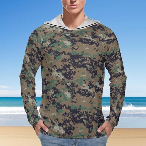 South Korea Special Warfare Command Pixel Camouflage Sun Protection Hooded Rashguard T-Shirt