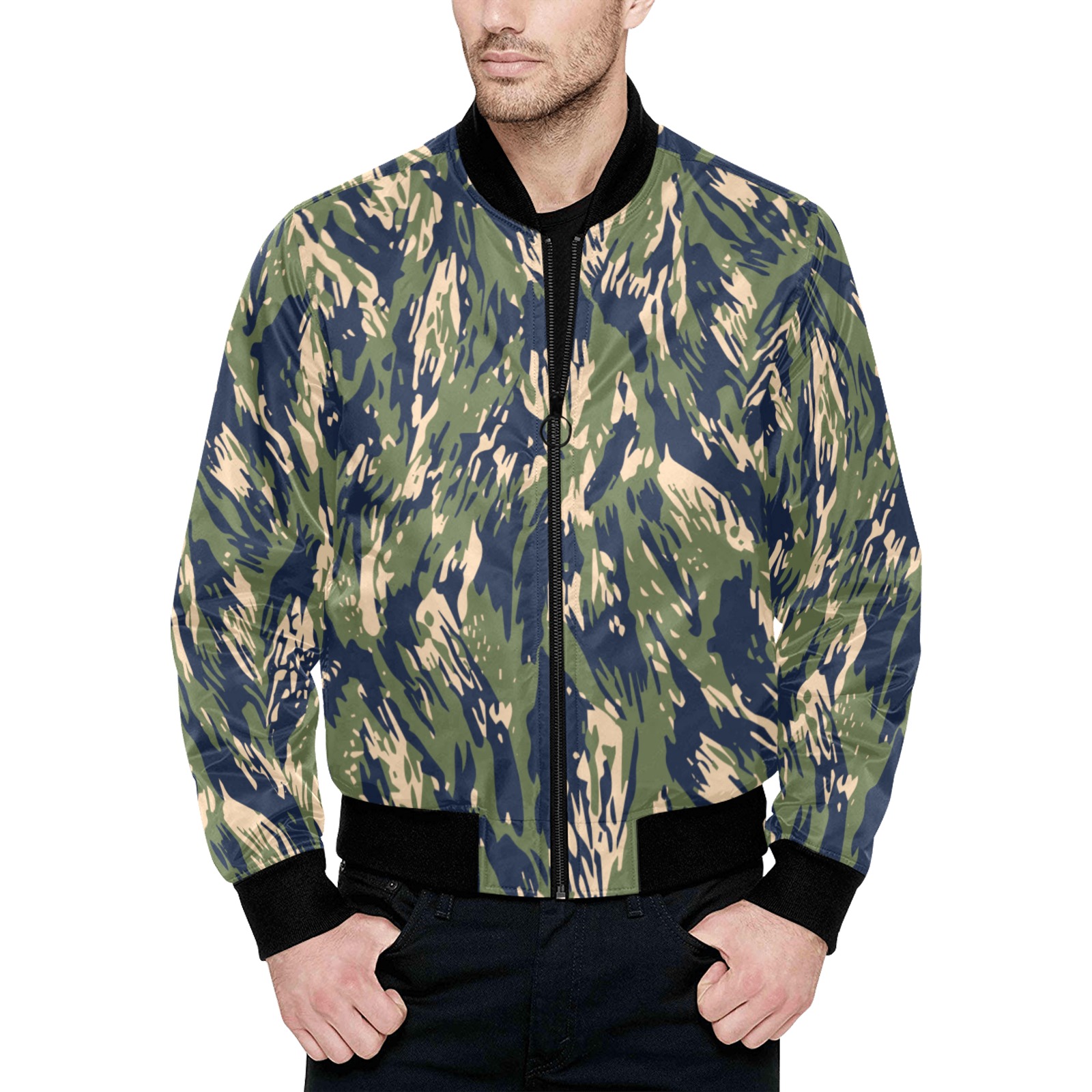 Greek vertical lizard v2 Camouflage Quilted Bomber Jacket.